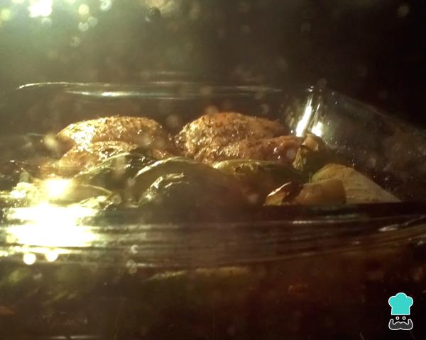 - No final você pode ligar o modo grill do forno (calor apenas em cima) para dourar a pele da coxa e conseguir que ela fique crocante.